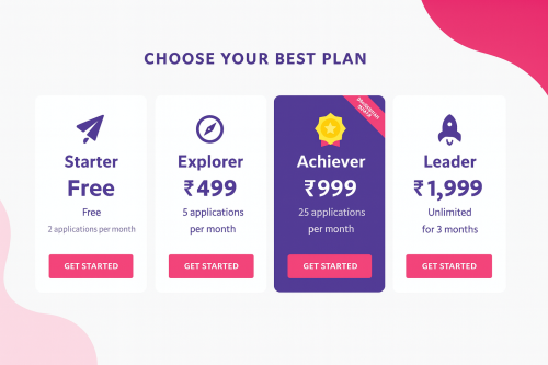 For serious applicants. Premium badge, 25 applications per month, faster profile exposure to employers.